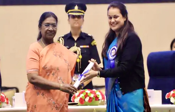 Barmer District Collector Tina Dabi was honoured by President for her outstanding performance in rainwater harvesting and public participation under Catch the Rain.