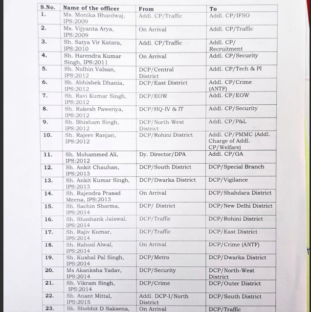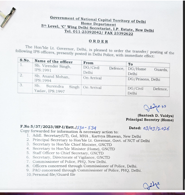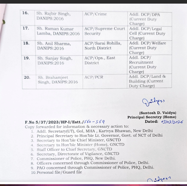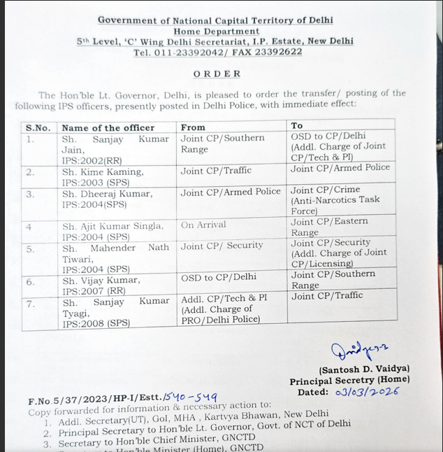 Delhi Police transferred 70 IPS officers across key departments to enhance administrative efficiency and strengthen departmental management.