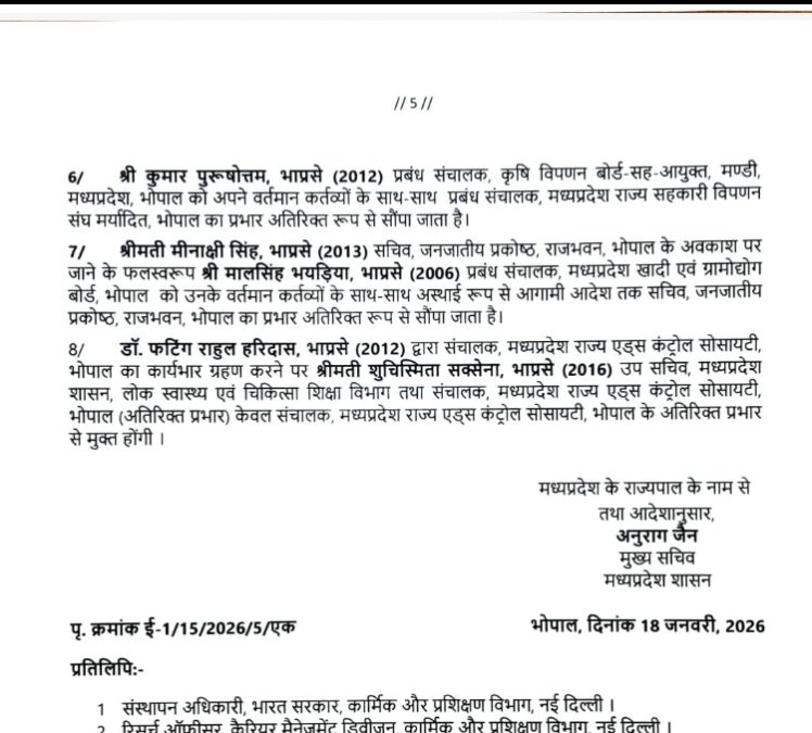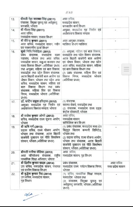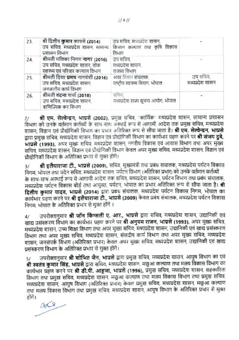 Ahead of Madhya Pradesh chief minister Mohan Yadav's foreign trip to Davos (Switzerland), the has effected a major administrative reshuffle and transferred 26 IAS officers.