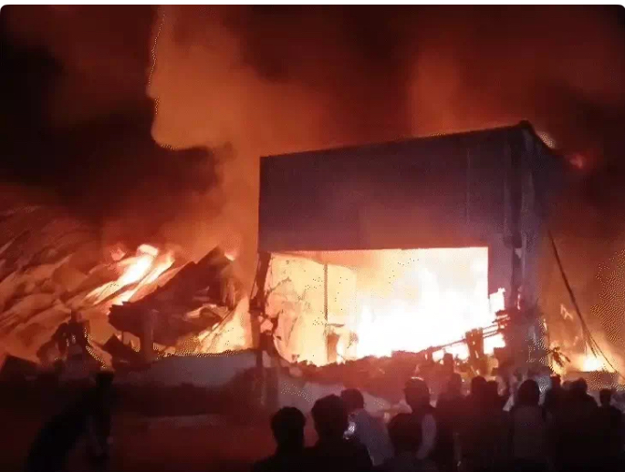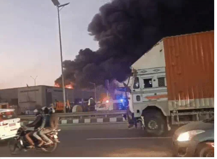 Massive fire broke out at a JCB workshop in Jaipur when 80 people were working in the premises. They were evacuated safely preventing any loss of life. Though machines and goods worth crores of rupees were reduced to ashes as the fire spread fast due to 5000 litres of chemicals present in the premises.