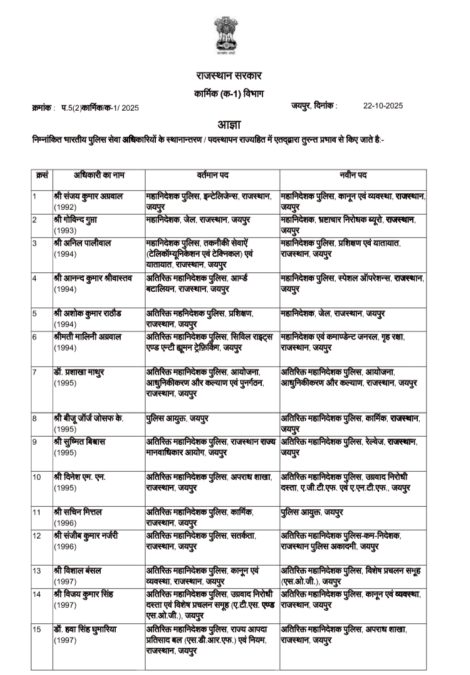 Two days after Diwali, Rajasthan government bursted transfer bomb moving 34 IPS officers including Jaipur Police Commissioner. Sachin Mittal, who was serving as additional director general personnel, has swapped position with Biju George Joseph, who had served as Jaipur Police Commissioner for more than 27 months across Congress and BJP governments. He has also been given additional charge of ADG police reorganisation and rules.