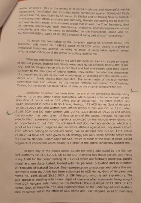 He also mentions meeting former IAS and chief principal secretary to chief minister Rajesh Khullar for his intervention. According to Kumar Khullar seemed convinced after having seen the documentary evidence shown to him on matters of discrimination, targeted mental harassment, public humiliation, and atrocities.