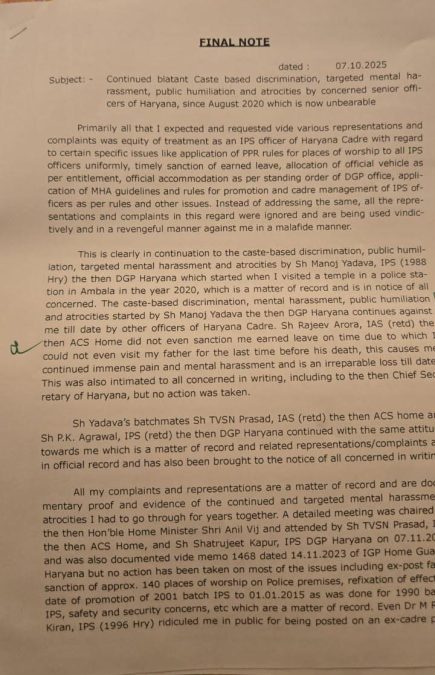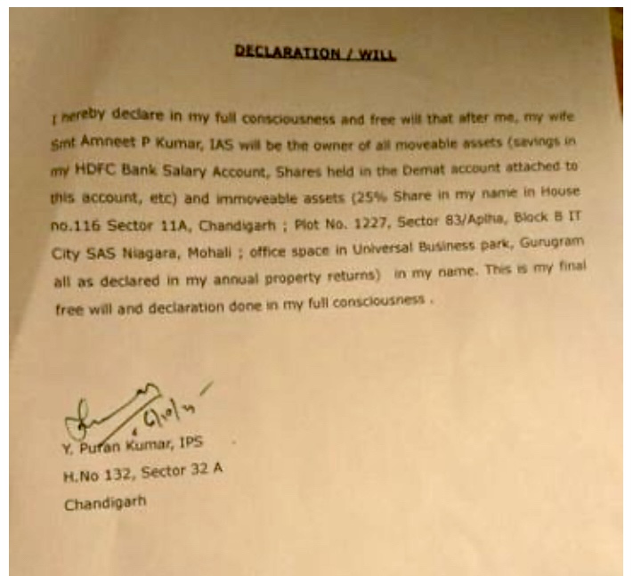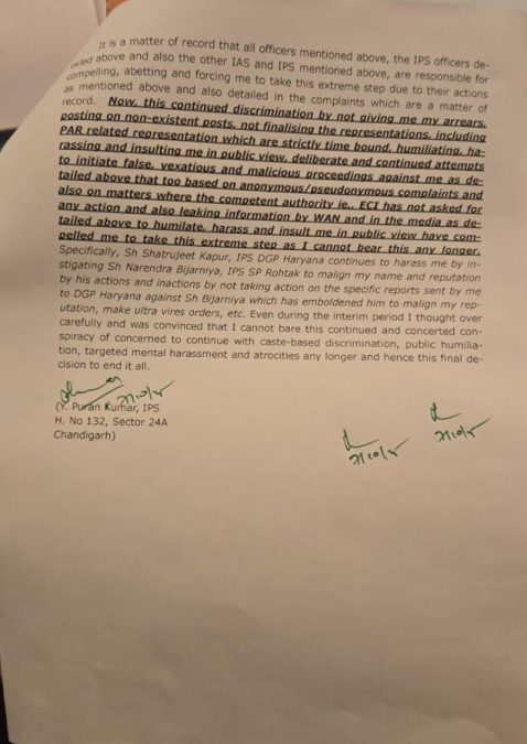 The reasons behind suicide of senior IPS officer Y Puran Kumar is wrapped in 4000 words. Each word is telling story of caste based discrimination, public humiliation, mental harassment and atrocities – which generally a  police officer never faces irrespective of caste and creed. But in case of Y Puran Kumar, a 2001 batch IPS, 3 officers and 12 IPS officers have allegedly harassed him on different occasions and allegedly pushed him to the corner. So much so that, Kumar had to resort to committing suicide, at a time when his wife Amneet P Kumar, an IAS officer of 2001 batch, was away to Japan on an official trip. He was at his government residence in Chandigarh with his younger daughter while his elder daughter was in US.